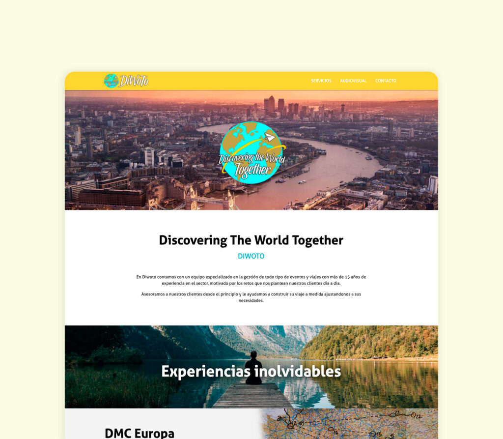 Diwoto es una agencia de eventos y viajes que ha confiado en BorealMi para llevar a cabo el desarrollo de su web corporativa, en la que describen sus servicios, junto con el diseño de su logotipo e imagen de marca.