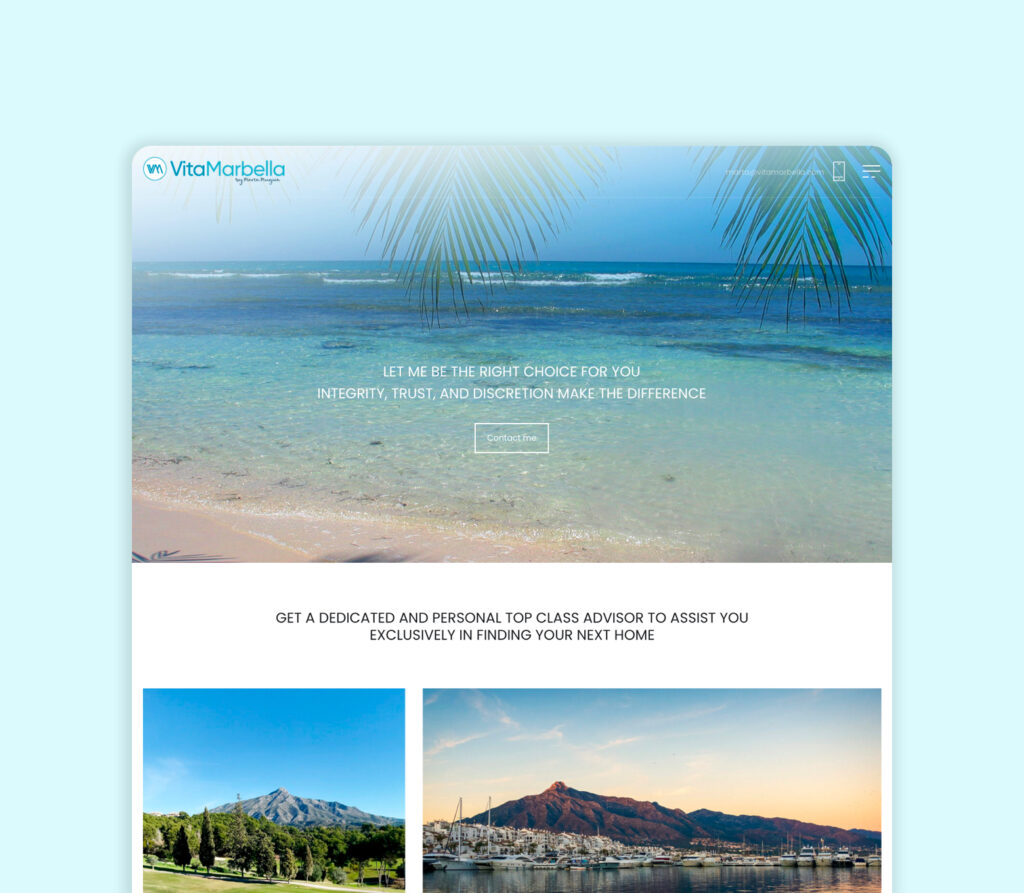 VitaMarbella es una empresa que se dedica a la búsqueda y aproximación de viviendas de lujo, que ha confiado en BorealMi para llevar a cabo el desarrollo de su web corporativa, en la que describen sus servicios, la configuración SEO de la misma, para mejorar el posicionamiento en buscadores y el diseño de su logotipo e imagen de marca.